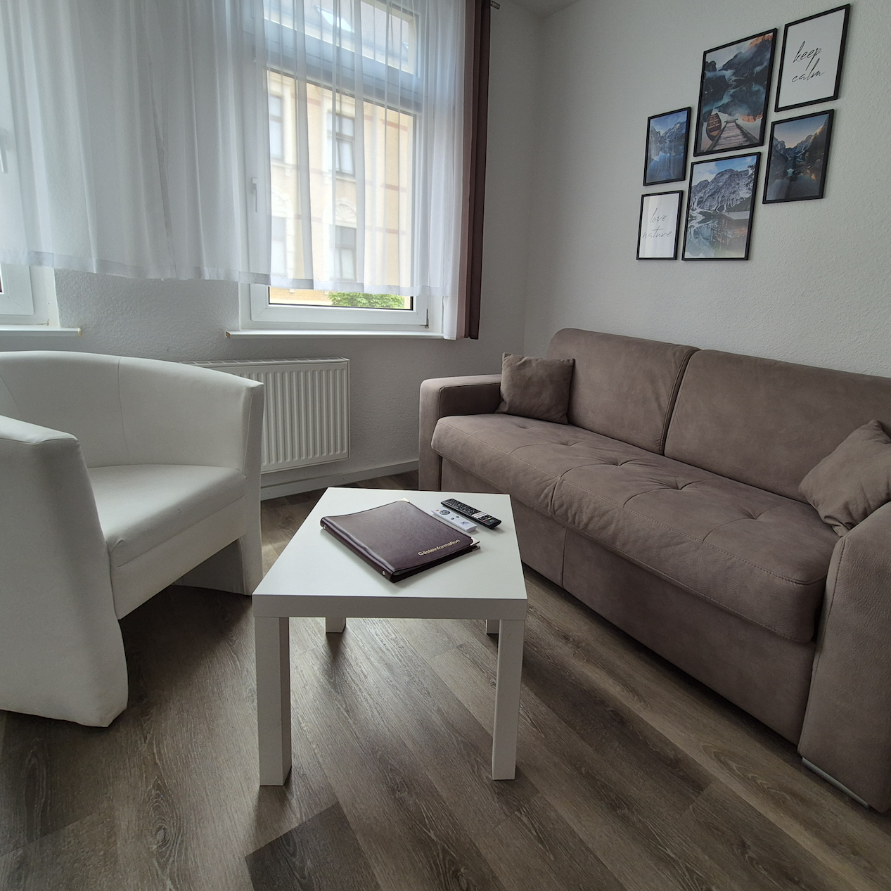 Küche, Bad, Schlafzimmer und Wohnzimmer mit Schlafcouch. Bis zu 3 Personen.