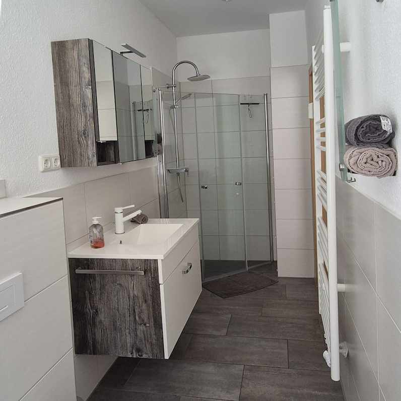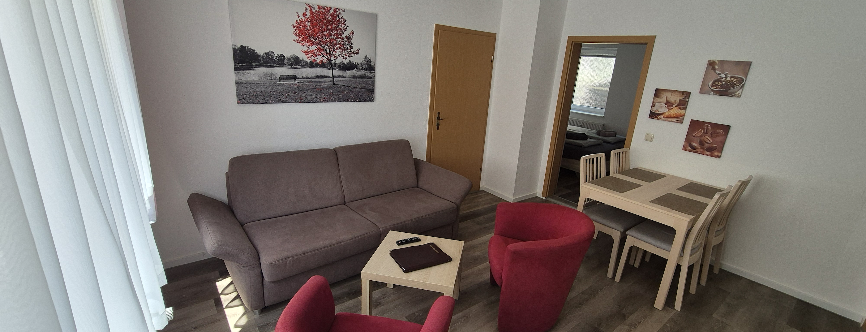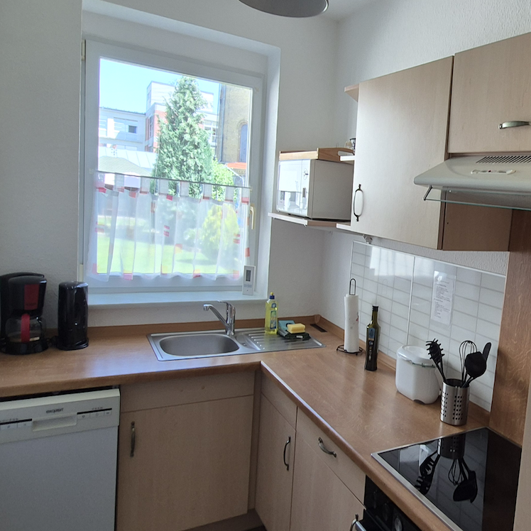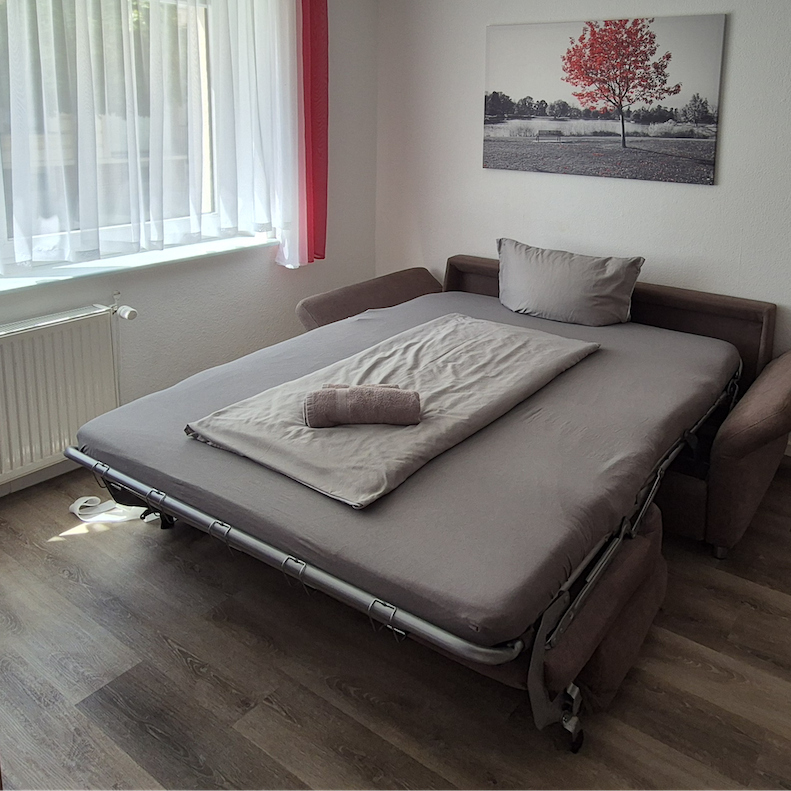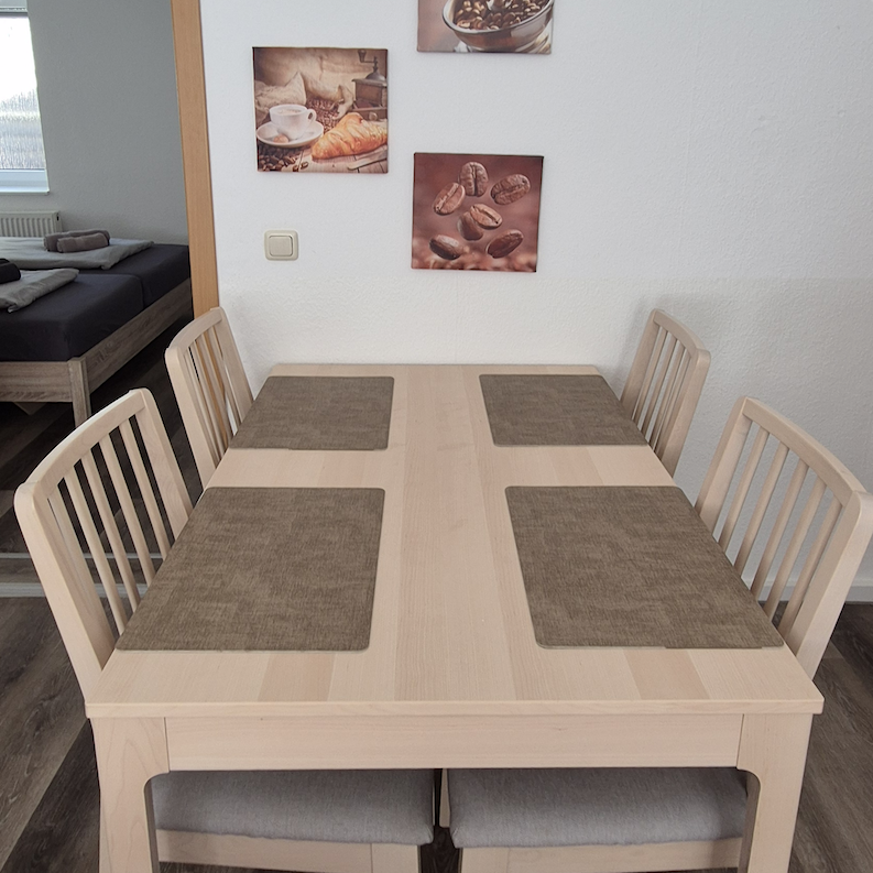 Die Ferienwohnung 1 befindet sich im Erdgeschoss des Hauses. Sie eignet sich als Stop für Radreisende, bietet einen angenehmen Aufenthalt für Familien mit Kindern, für Gruppen von Freunden oder für Business-Traveller. Sie liegt in einer ruhigen Gegend mit vielen Parkmöglichkeiten in den anliegenden Straßen.